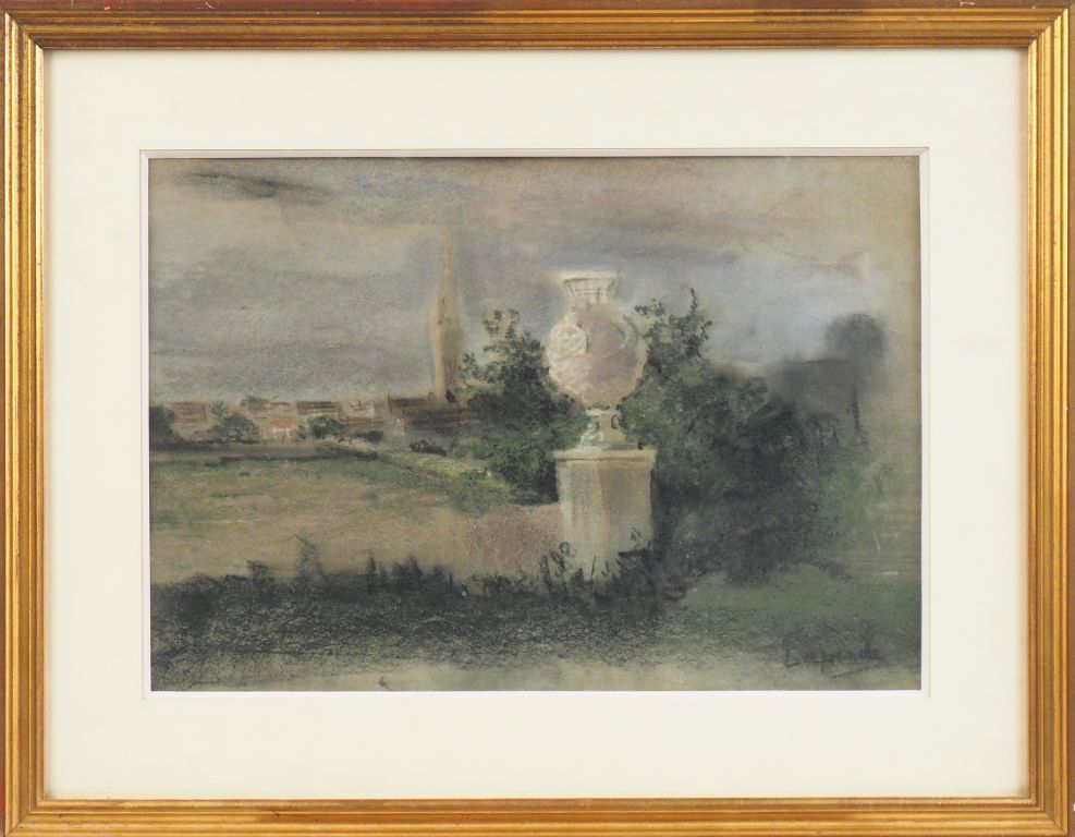 LAPRADE. "Le village vu du parc". Pastel, signé en bas à droite. Dim. ...