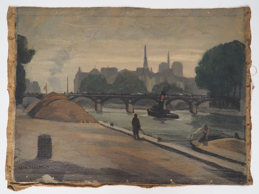 Léon PARENT. "les quais de Seine à Paris" Huile sur toile, signée en bas à gauche et datée 29 Dim. 42 x 55 cm