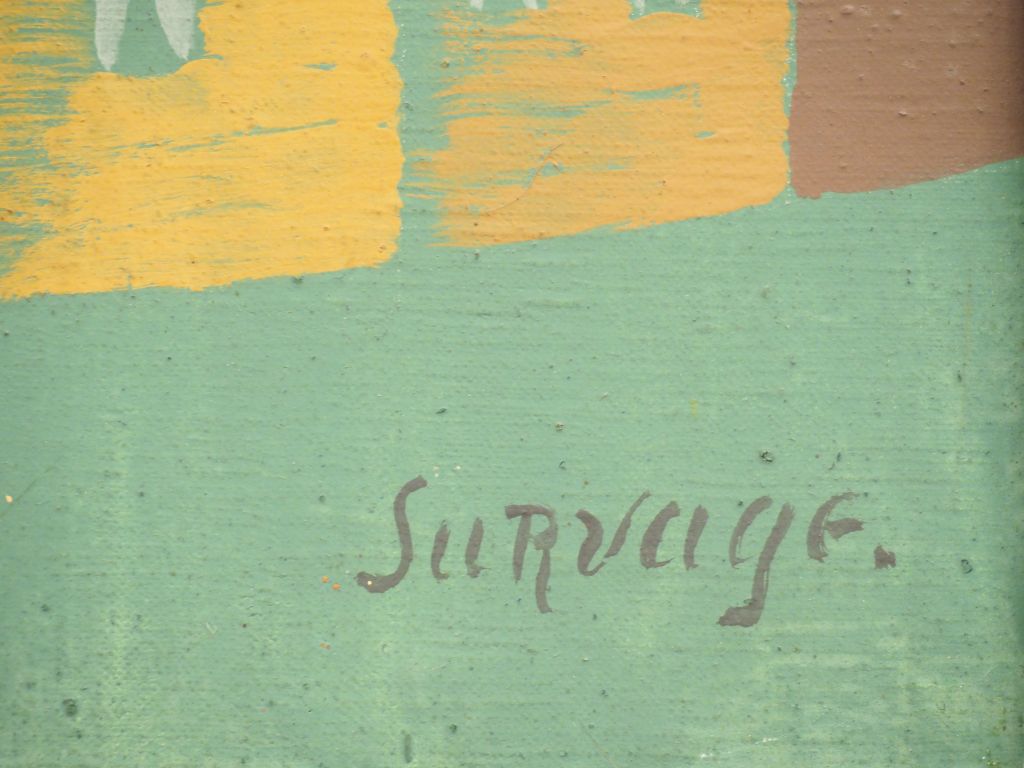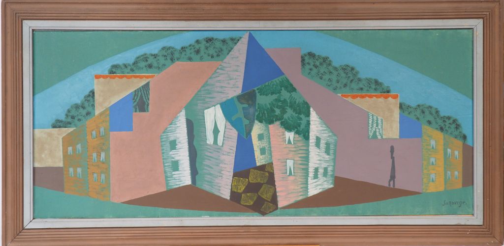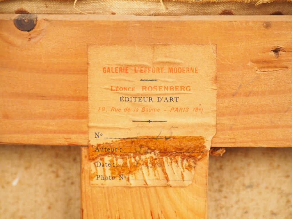 Léopold SURVAGE. "Homme dans la ville". Huile sur toile. Signée en bas à droite. 39.5 x 95 cm. Certificat de Mme DIVIETO. Etiquette d'exposition au dos : Galerie l'Effort Moderne. Léonce Rosenberg. Provenance : Famille du Sud Ouest de la France jusqu'à aujourd'hui.
