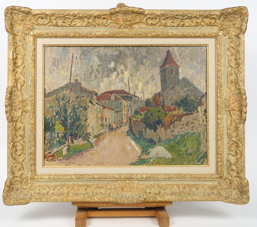 LEPINE. "La route de Blaye entre Saint André de Cubzac et Blaye" Huile sur panneau. Signée en bas à droite. Dim. 40 x 54 cm