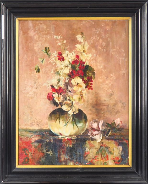 Louis DESBORDES. "nature morte au bouquet de fleurs". Huile sur toile, signée en bas à droite. Dim. 65 x 50,5 cm.