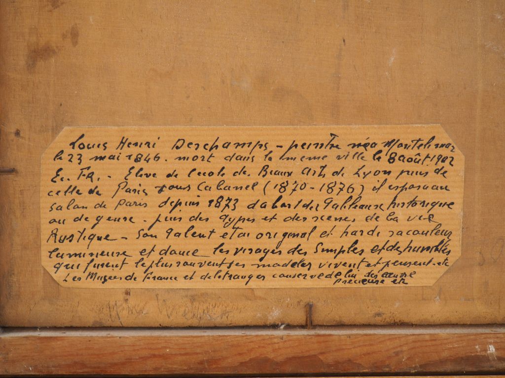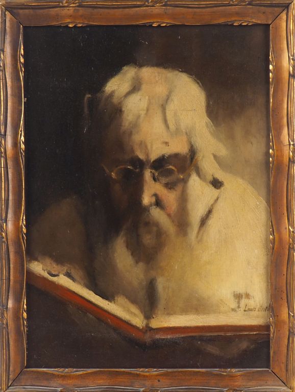 Louis Henri DESCHAMPS. "Vieil homme à la lecture" Huile sur panneau, signée en bas à droite Dim. 33 x 23,5 cm