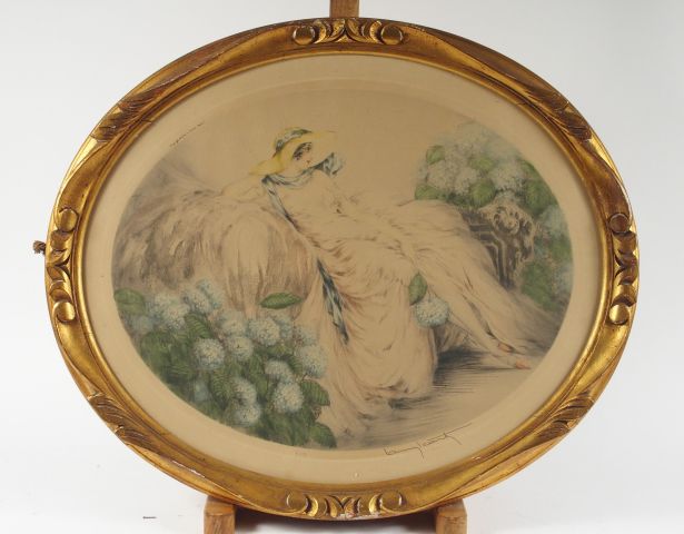 Lot de Louis ICART "Elégantes aux hortensias bleus". Gravure en couleurs. au prix de 100 à 200 € en vente aux enchères par l'hôtel des ventes Primardeco