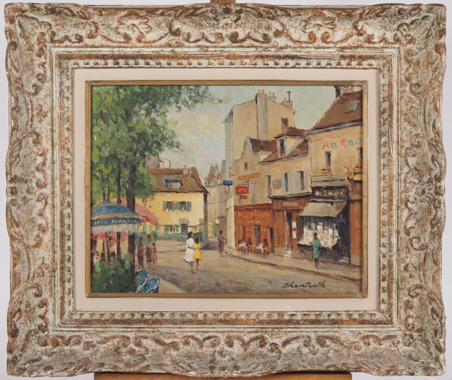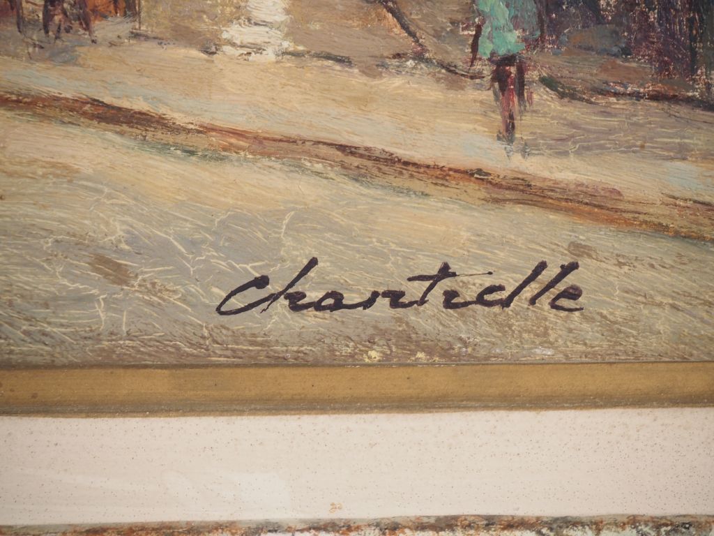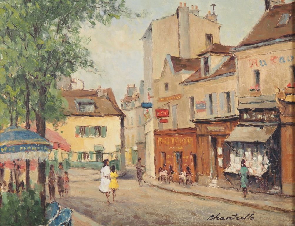 Lucien CHANTERELLE. "place du Tertre à Montmartre" Huile sur panneau, signée en bas à droite Dim. 27 x 35 cm