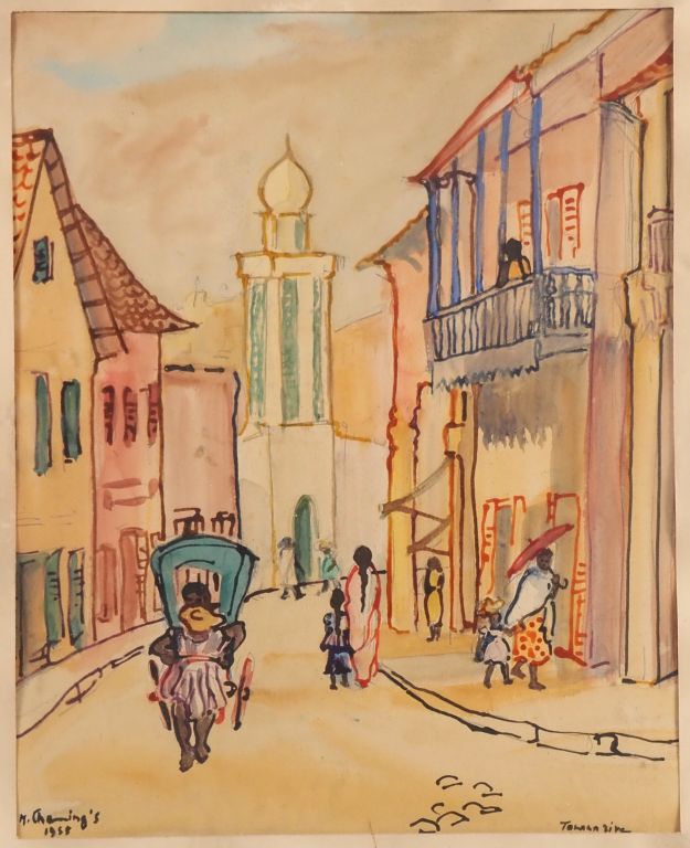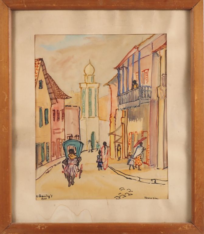 M. CHAMING'S. "rue de Tananarive" Aquarelle, signée en bas à gauche située et datée 1958 Dim. À vue 38 x 30 cm