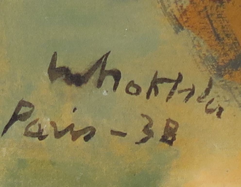 M. NAKHLA "Le prisonnier" Huile sur papier contrecolé sur carton. Signée en bas à droite, datée 1938 et située à Paris. 32 x 42 cm (Très petites déchirures sur les bords du papier)