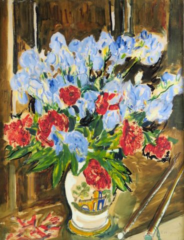 Mario CAVAGLIERI "Bouquet de fleurs dans un vase". Huile sur papier, signée en bas à droite. 64 x 49 cm