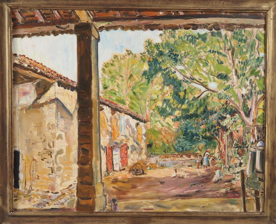 Mario CAVAGLIERI. "cour de ferme" Huile sur toile, signée en bas à droite et datée 53 Dim. 64,5 x 81 cm