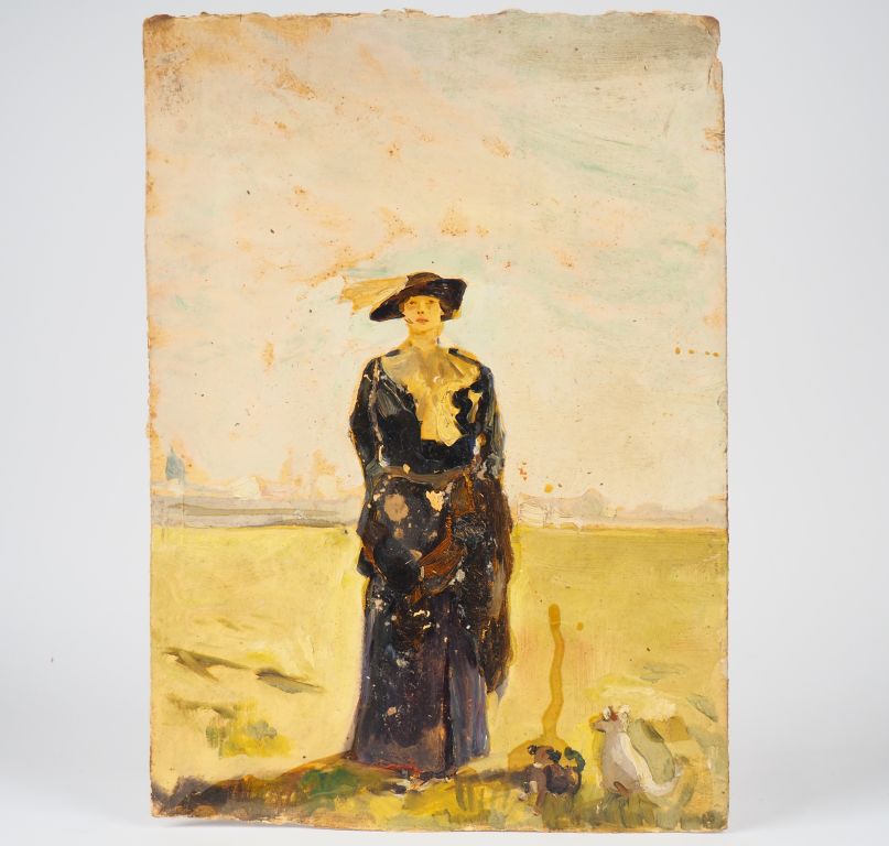 Mario CAVAGLIERI. "Giulietta dans la plaine du Pô" Huile sur carton, titrée et datée au dos 1912 Dim. 51,5 x 36,5 cm
