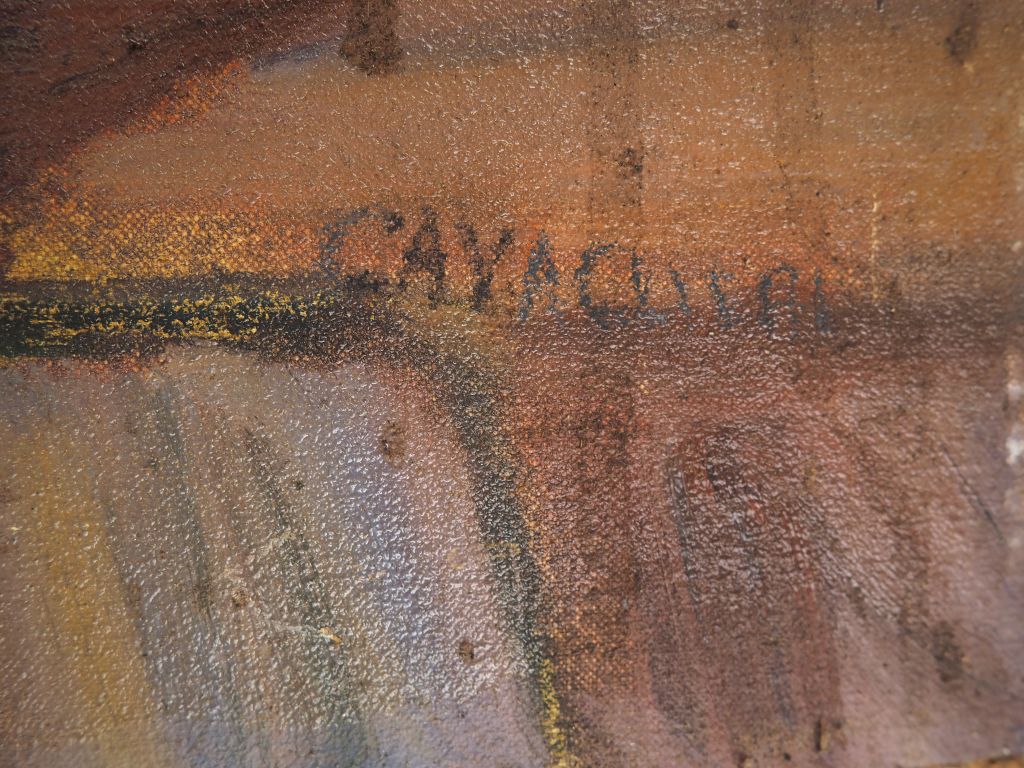 Mario CAVAGLIERI. "La cuisine du moulin" Huile sur toile, signée en bas à droite Dim. 69,5 x 49 cm