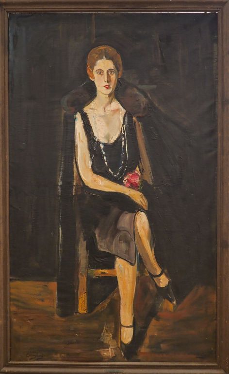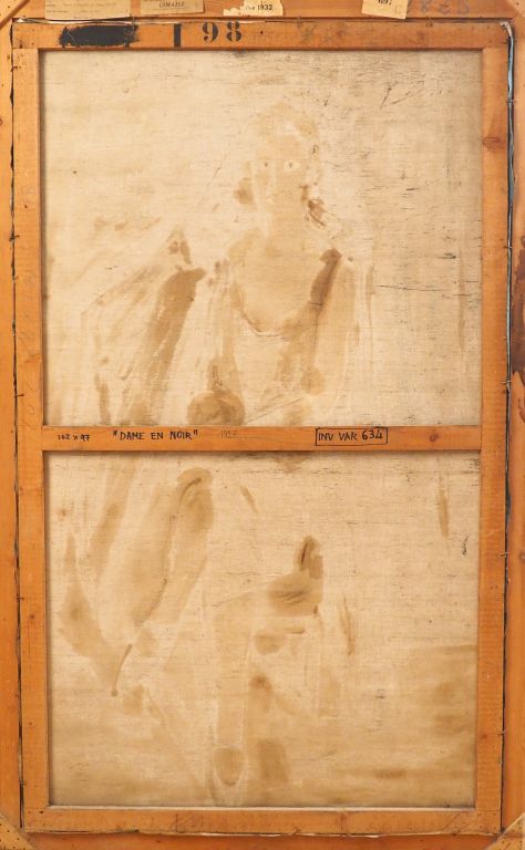 Mario CAVAGLIERI. "La dame en noir" Huile sur toile, signée en bas à gauche et datée au dos 1927 Dim. 162 x 97 cm