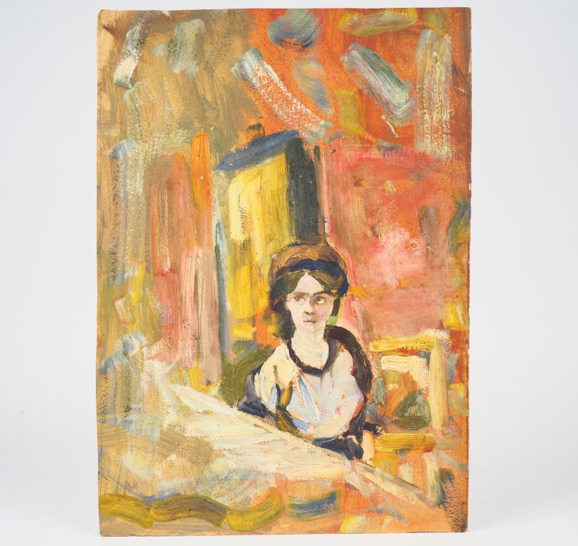 Mario CAVAGLIERI. "Le bandeau bleu" Huile sur carton, titrée et datée au dos 1908 Dim. 49 x 35 cm