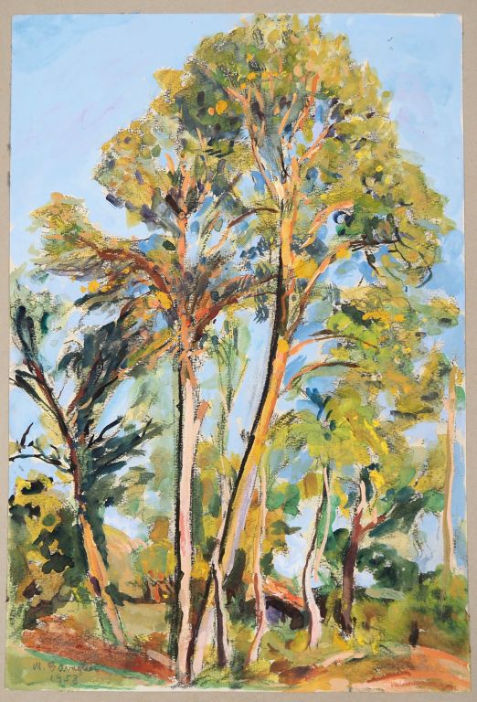 Mario CAVAGLIERI. "Les grands arbres" Aquarelle, légèrement gouachée, signée en bas à gauche et datée 1958 Dim. 45,5 x 31 cm