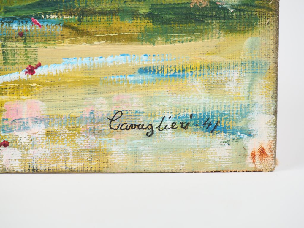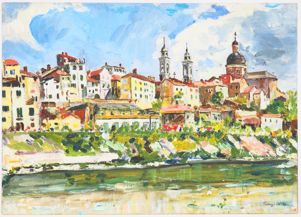 Mario CAVAGLIERI. "Ovada" Huile sur carton, signée en bas à droite et datée 41 Dim. 27,5 x 38 cm