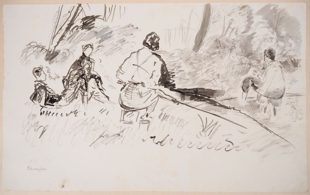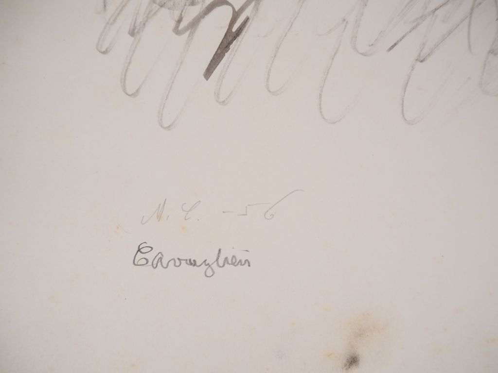 Mario CAVAGLIERI. "Partie de pêche" Encre, signée en bas à gauche et datée 56 Dim. 37 x 60 cm