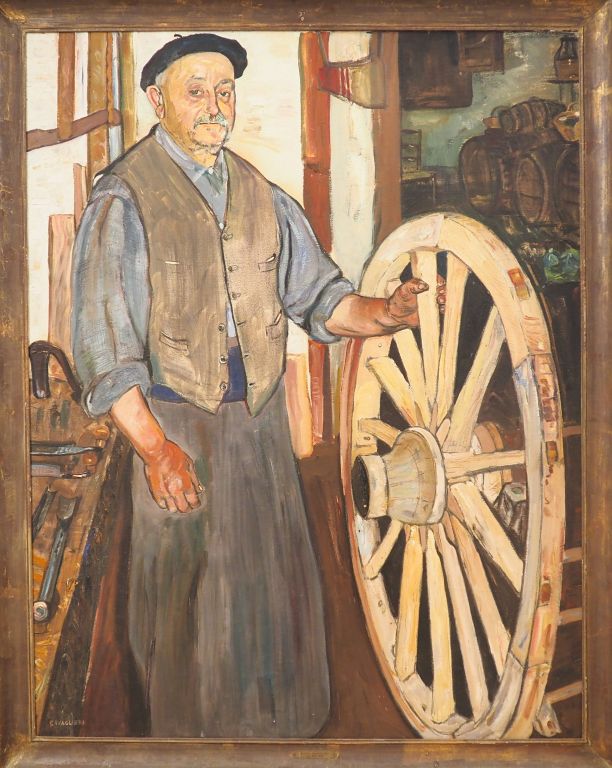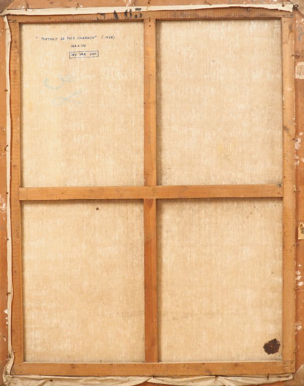 Mario CAVAGLIERI. "Portrait de mon charron" Huile sur toile, signée en bas à gauche, titrée et datée au dos 38 Dim. 146 x 114 cl