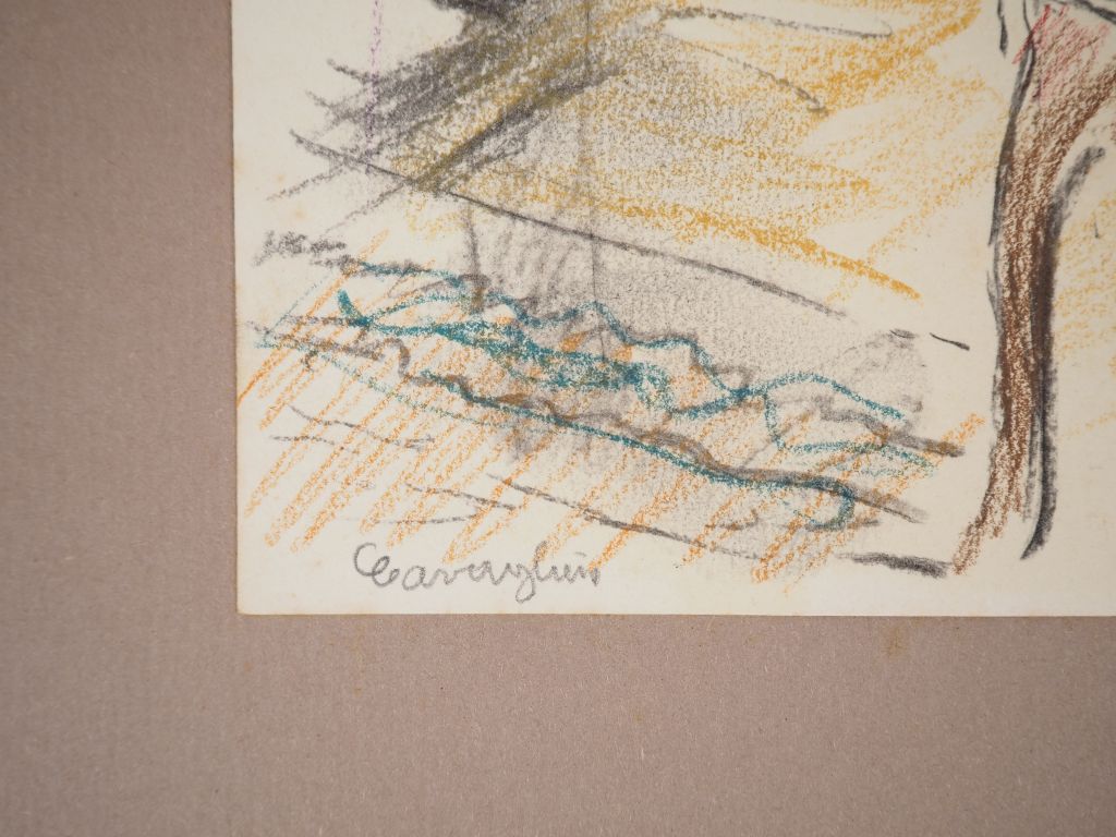 Mario CAVAGLIERI. "Repos au salon" Dessin, crayons de couleurs, signé en bas à gauche Dim. 30,5 x 45,5 cm