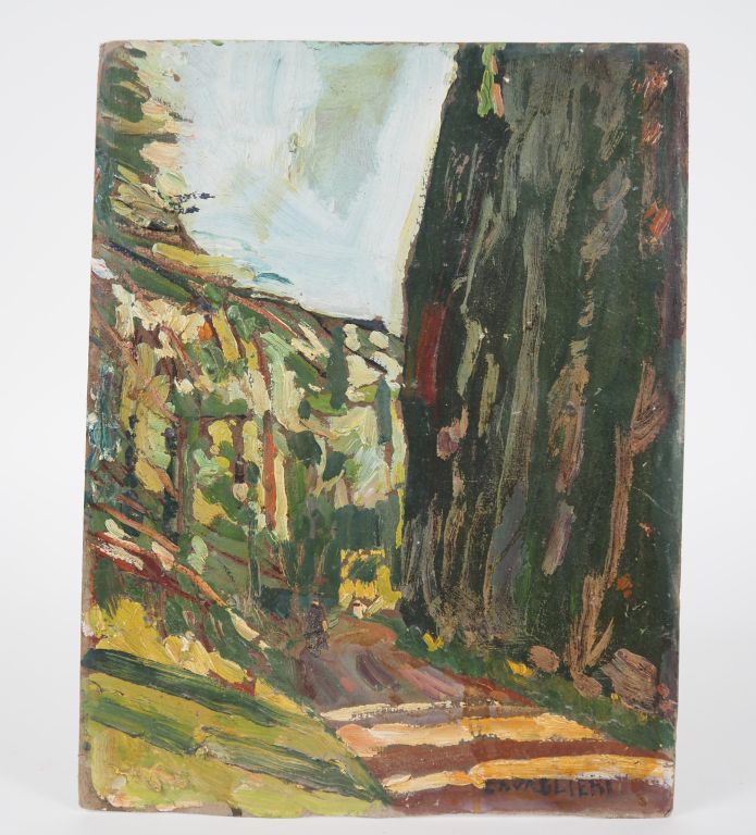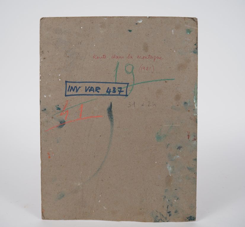 Mario CAVAGLIERI. "Route dans la montagne" Huile sur carton, signée en bas à droite Dim. 31 x 24 cm