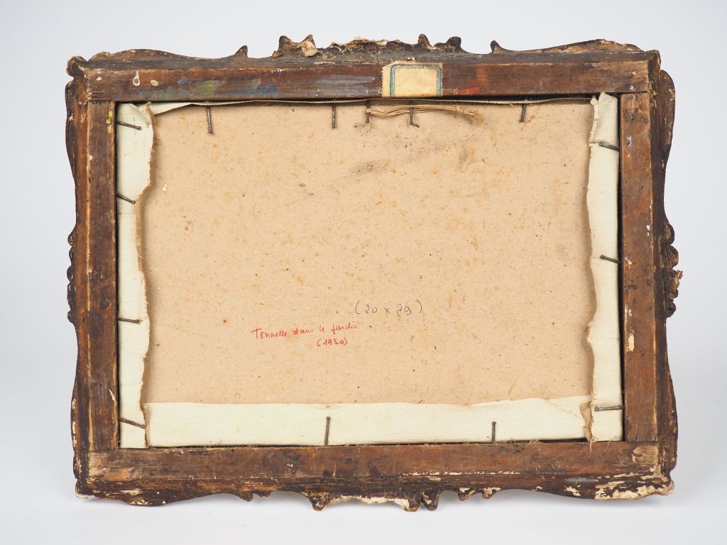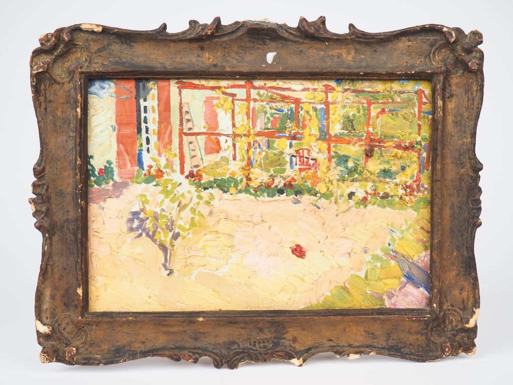 Jospeh BERGES. "Jardin fleuri". Huile sur carton, signée en bas à droi lot n°3 Estimation : 80 - 120 €