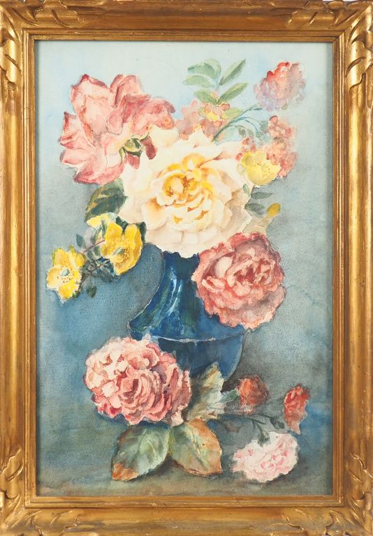 Marthe La LYRE LEVESQUES. "Nature morte aux fleurs". Deux d'aquarelles signées. Dim. 53,5 x 37 cm - 53 x 34,5 cm