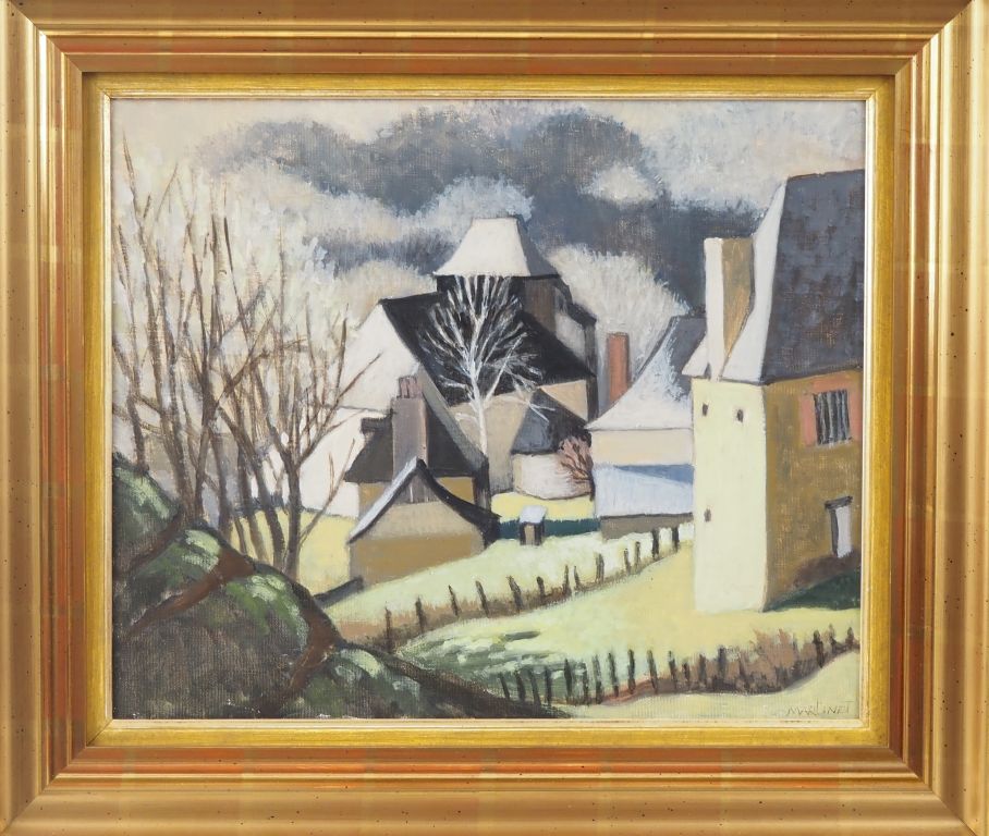 MARTINET "village aux toits de lauze" Huile sur toile, signée en bas à droite Dim. 38,5 x 46,5 cm