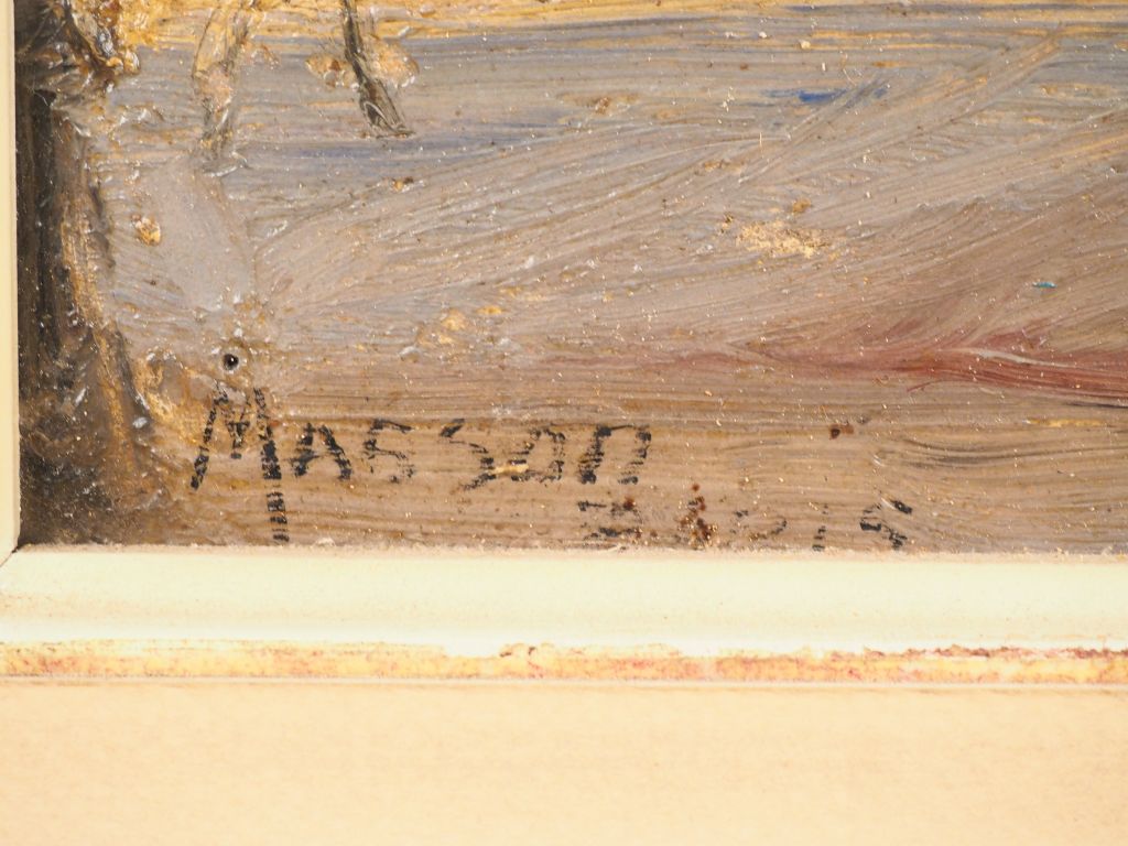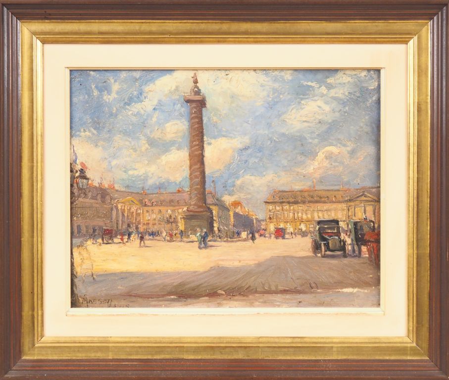 MASSON. "Paris, place Vendôme". Huile sur panneau, signée en bas à gauche. Dim. 30 x 39 cm.