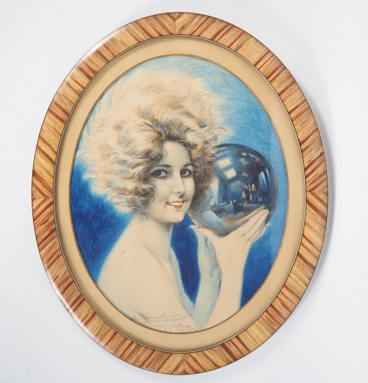 Maurice MILLIERE. "la jeune fille à la boule de cristal" Aquarelle, signée en bas à gauche Dim. 43 x 33,5 cm