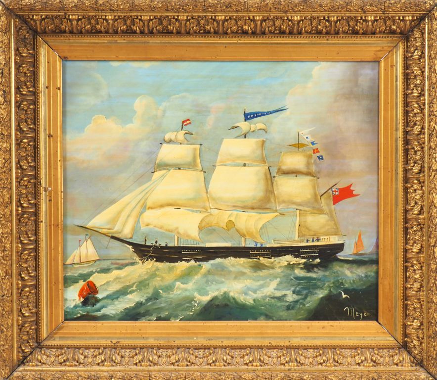 MEYER. "Marine". Huile sur toile, signée en bas à droite. Dim. 47 x 55 cm.
