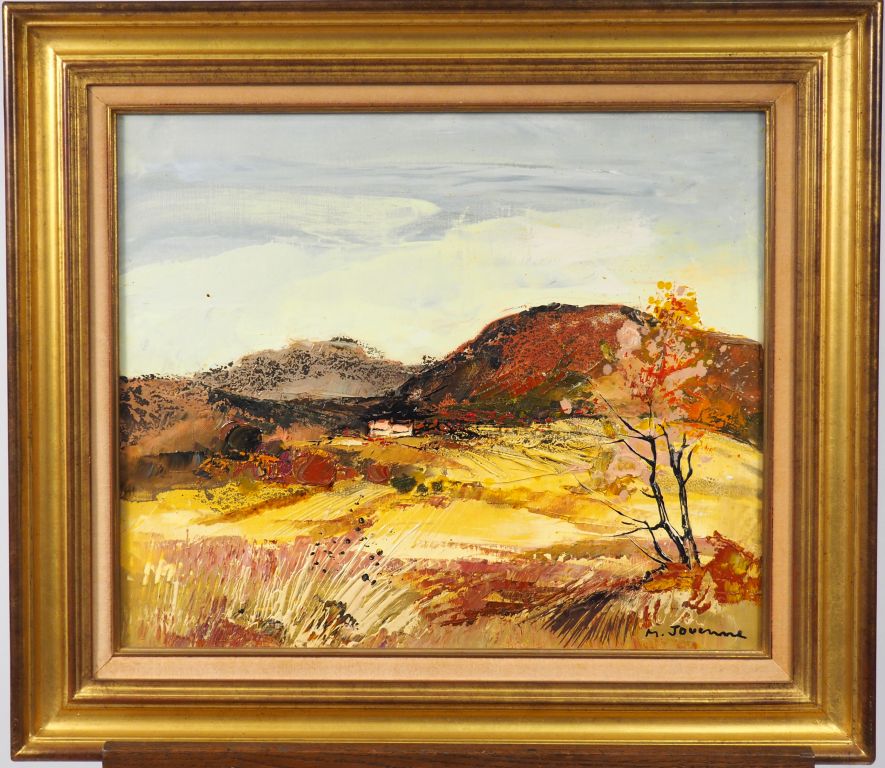 Michel JOUENNE. "Le mas perdu". Huile sur toile, signée en bas à droite. Dim. 46 x 45 cm.