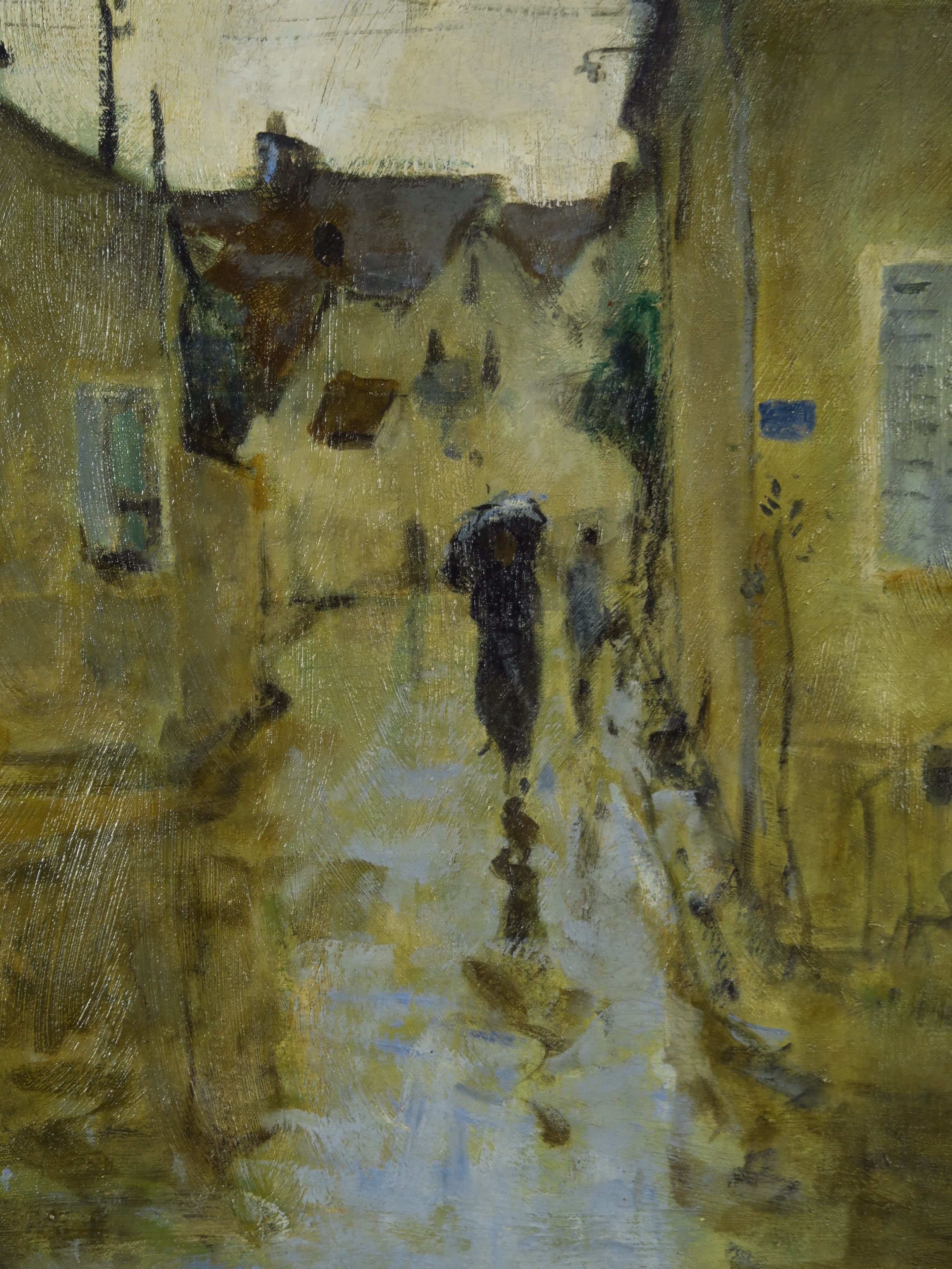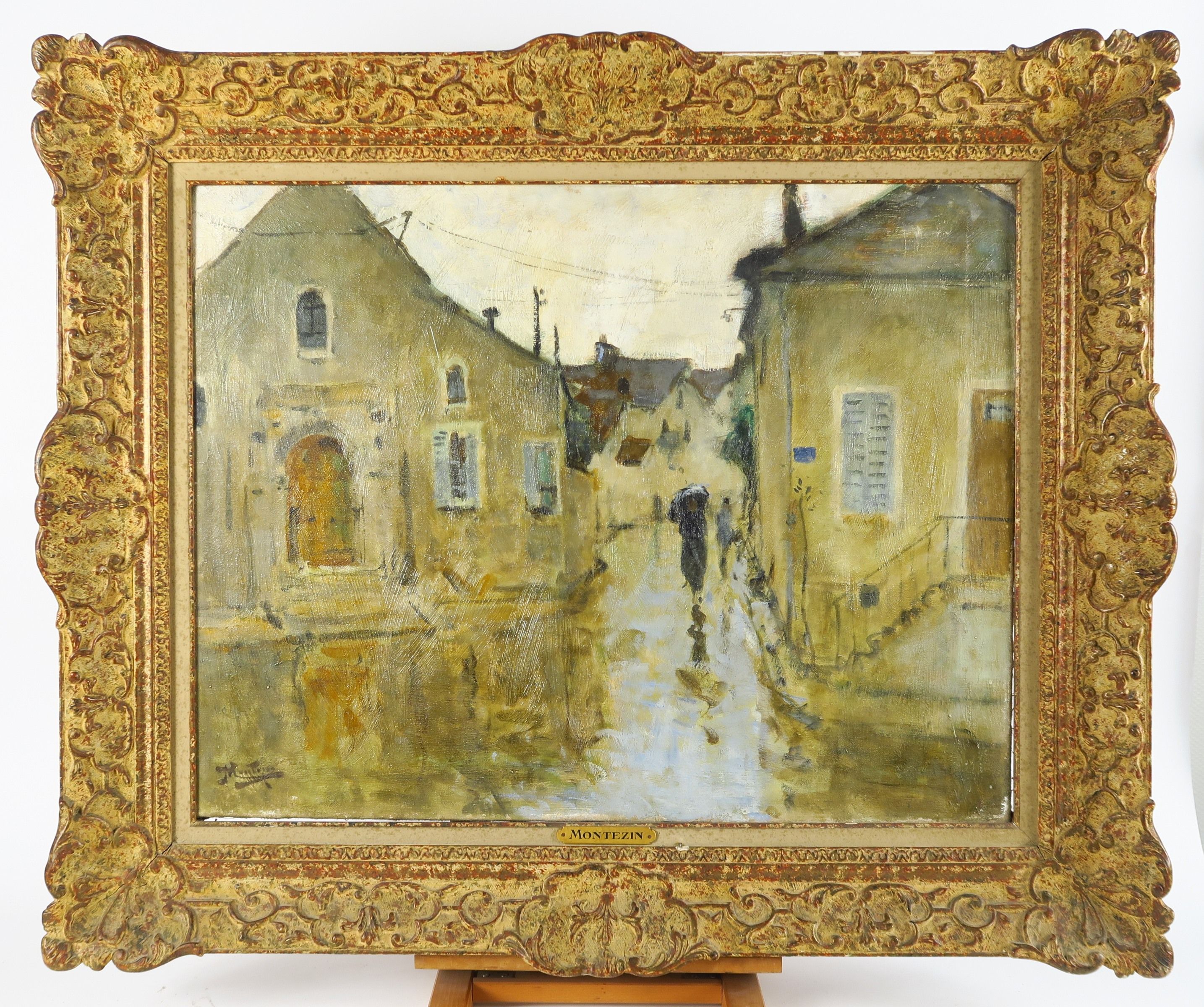 MONTEZIN "Un jour de pluie". Huile sur toile. Signée en bas à gauche. Titrée au dos. 57 x 73 cm