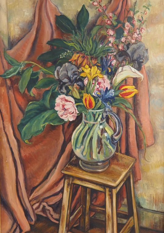 NOYELLE. "bouquet de fleurs dans une carafe" Huile sur toile. Dim. 9...