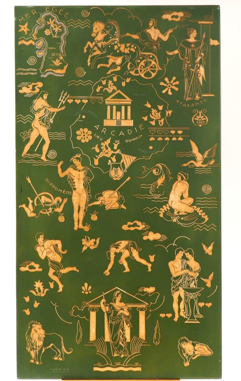 P. J. LETAUDY "Arcadie" Panneau en laque. Signé en bas à gauche et daté 1936. 100,5 x 55 cm