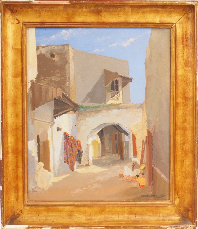 P. J. LETAUDY "Ruelle d'afrique du Nord" Huile sur toile. Signée en bas à droite et datée. 46 x 38 cm