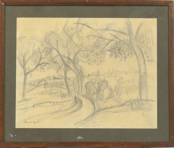 Lot de P. KREMEGNE. "Paysage de Corrèze" Dessin. Signé en bas à gauche. Dim. au prix de 150 à 250 € en vente aux enchères par l'hôtel des ventes Primardeco