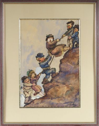 PAILHES "La cordée". Aquarelle. Signée en bas à droite. 43 x 29 cm