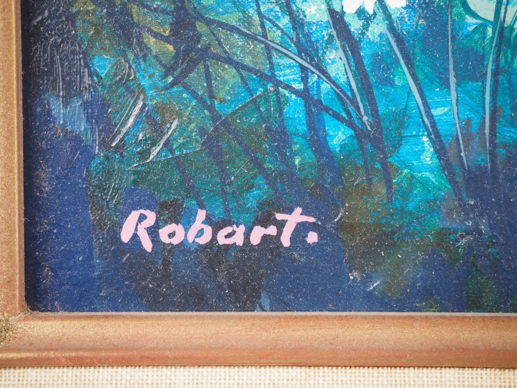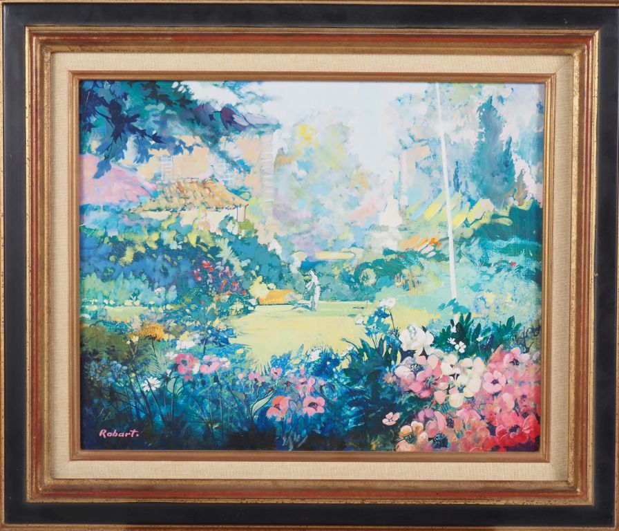 Patrick ROBART. "la pelouse" Huile sur toile, signée en bas à gauche Dim. 33 x 41,5 cm