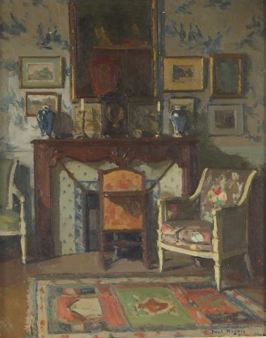 Paul HUGUES "Intérieur". Huile sur panneau. Signée en bas à droite. 41 x 32 cm