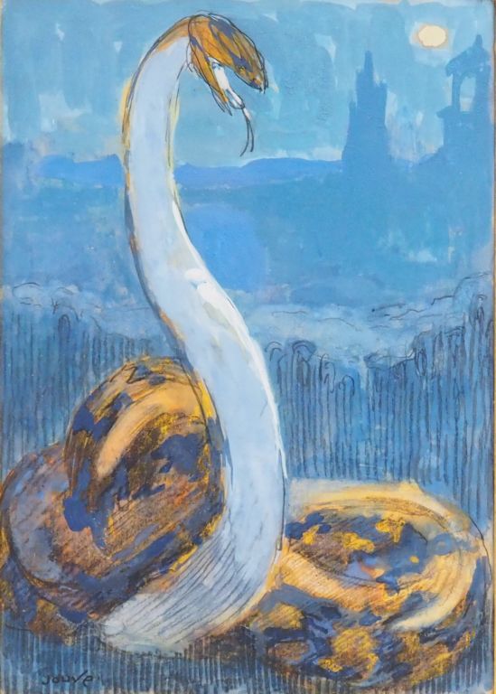 Paul JOUVE. « Kaa » Aquarelle gouachée. Signée en bas à gauche. 22,3 x 15,5 cm