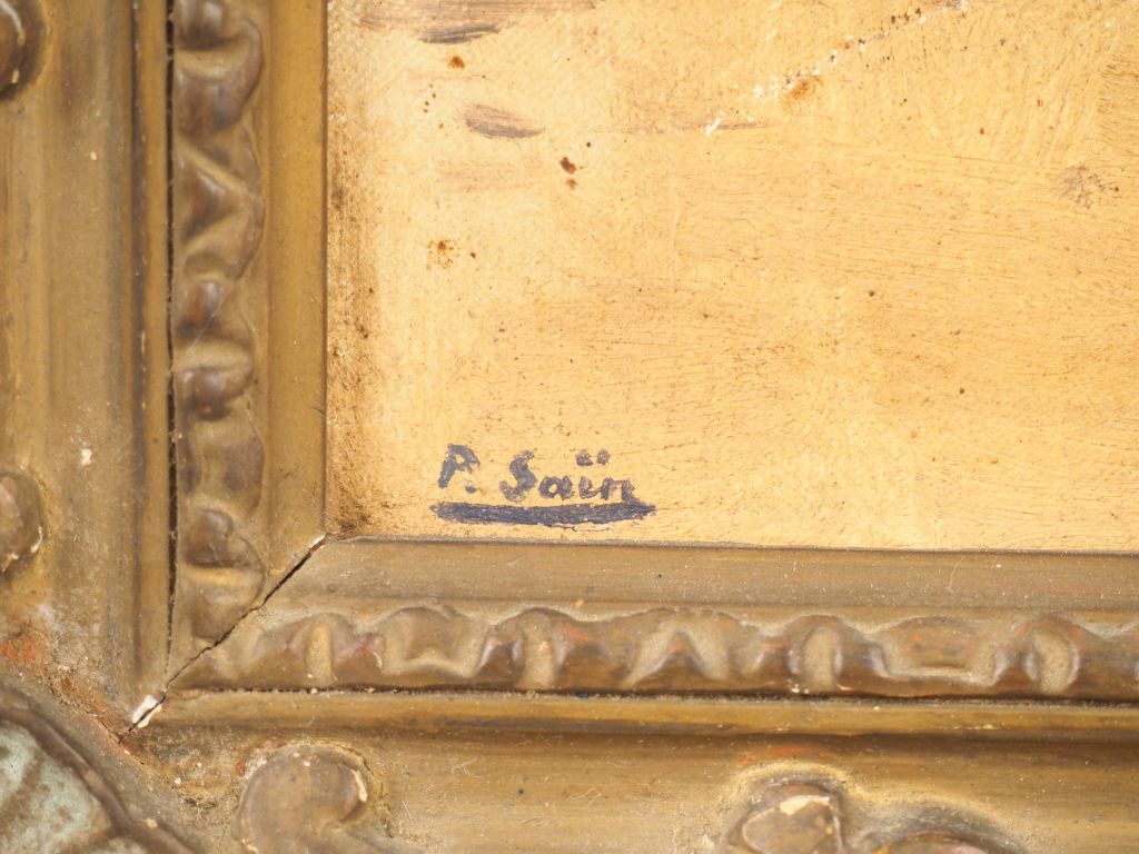Paul SAÏN. "Village animé en Afrique du nord". Huile sur toile, signée en bas à gauche. Dim. 33 x 46,5 cm. (Accident)
