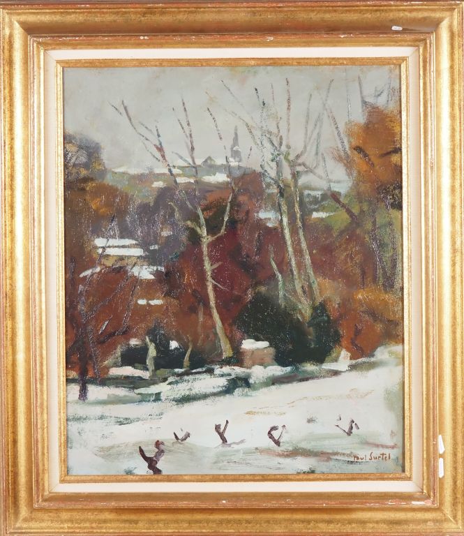 Paul SURTEL. "Paysage d'hiver" Huile sur carton, signée en bas à droite Dim. 54,5 x 46 cm