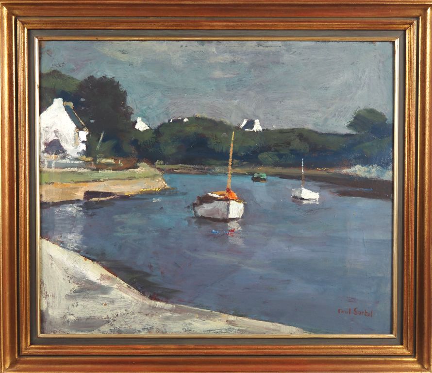 Paul SURTEL. "Ria en Bretagne" Huile sur isorel, signée en bas à droite Dim. 54 x 65,5 cm