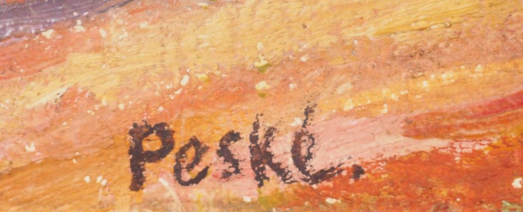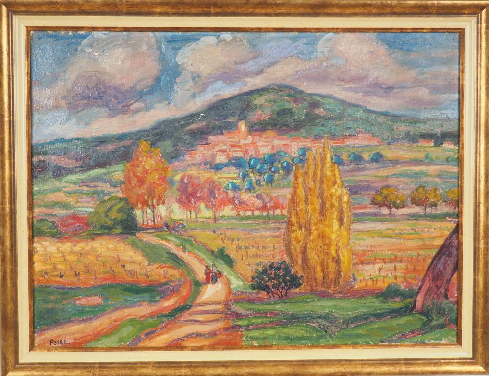 PESKE "La plaine de Bormes en hiver". Huile sur toile, signée en bas à gauche Dim. 54,5 x 73 cm