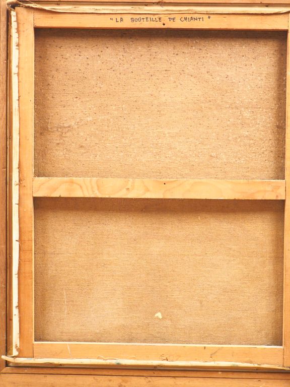 Pierre BOUDIN. "La bouteille de Chianti". Huile sur toile, signée en bas à droite. Dim. 73,5 x 60,5 cm