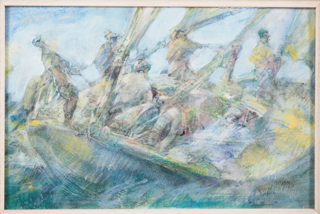 Lot de Pierre CARO. "pecheurs" Huile sur carton, signée en bas à droite Dim. au prix de 80 à 120 € en vente aux enchères par l'hôtel des ventes Primardeco