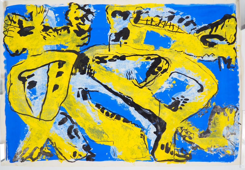 Pierre PRENERON. Composition abstraite'. Acrylique sur papier. Signée. Dim. : 70 x 100 cm.