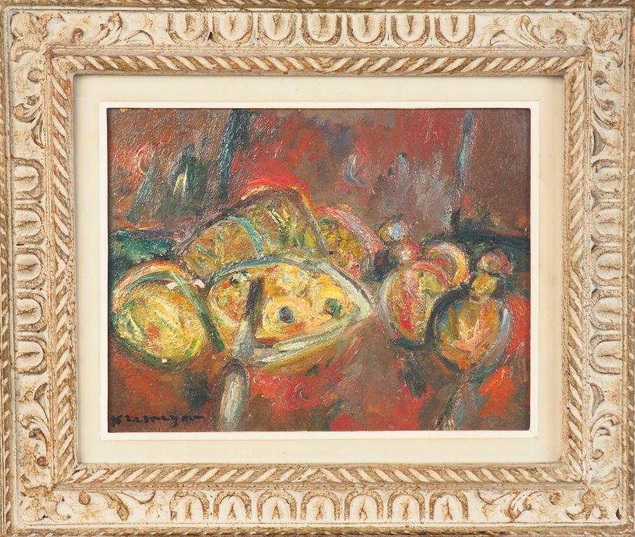 Pinchus KREMEGNE. "Nature morte aux fruits". Huile sur toile, signée en bas à gauche. Dim. 27 x 35 cm. (Sauts de peinture).