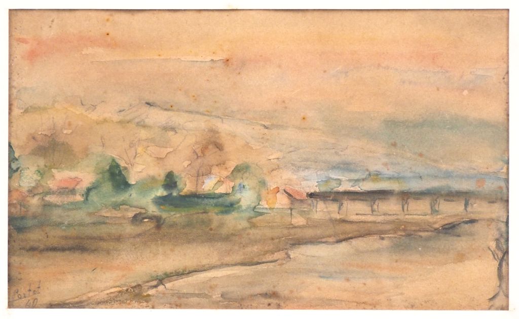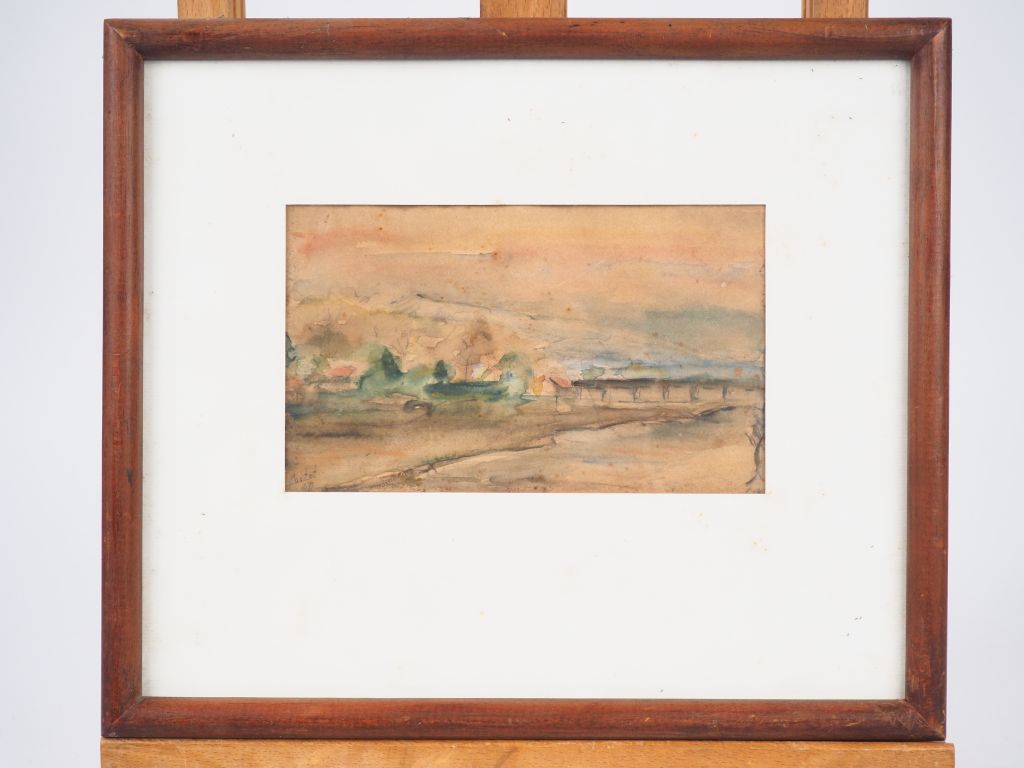 PORTET. "Paysage". Aquarelle, signée en bas à gauche et datée 40. Dim. (à vue) : 11 x 18 cm.