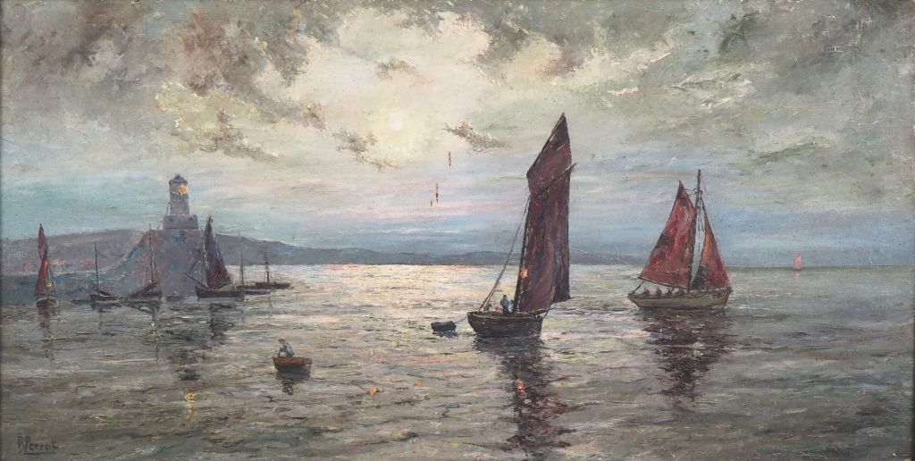Lot de R. PERROT. "Marine" Huile sur toile, signée en bas à gauche Dim. 52 au prix de 200 à 300 € en vente aux enchères par l'hôtel des ventes Primardeco