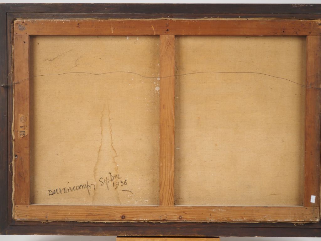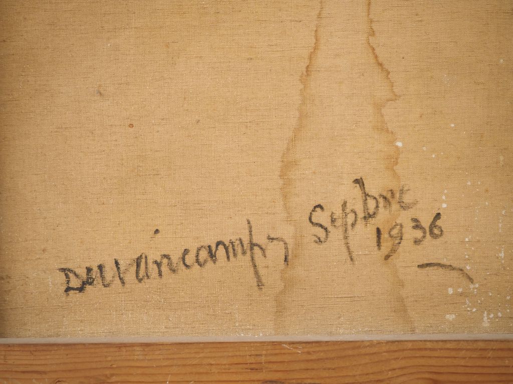 Rafael DURANCAMPS. "Scène de Corrida" Huile sur toile, signée au dos et datée septembre 1936 Dim. 60 x 92 cm Porte l'étiquette de la Galerie Chappe