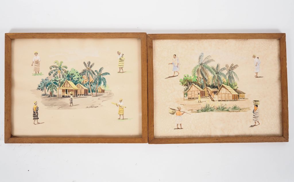 REGOAMANAMJITA. "Etude de personnages" Paire d'aquarelles, signées en bas à droite Dim. 24 x 31,5 cm (mouillures)
